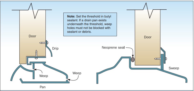 Exterior doorways are essentially large holes in the exterior shell of the home connecting the indoors to the outdoors or to other unconditioned spaces like garages, attics, and porches. Doors adjacent to unconditioned spaces should be treated as exterior doors. With proper installation and air-sealing, exterior doors do not have to represent a significant source of air leakage and heat loss. When installed correctly, door sweeps can provide a robust barrier at the bottom of doors, preventing air, wind, rain, pest, and dust infiltration.