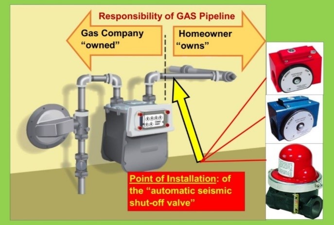 - Seismic valves are installed on the homeowner’s side of the meter by a licensed plumber or the homeowner.