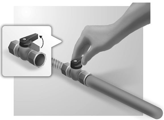 - Give the valve a quarter turn in either direction. The valve is closed when the tang (the part of the valve you put the wrench on) is crosswise (perpendicular) to the pipe. See Figures 5 and 6.