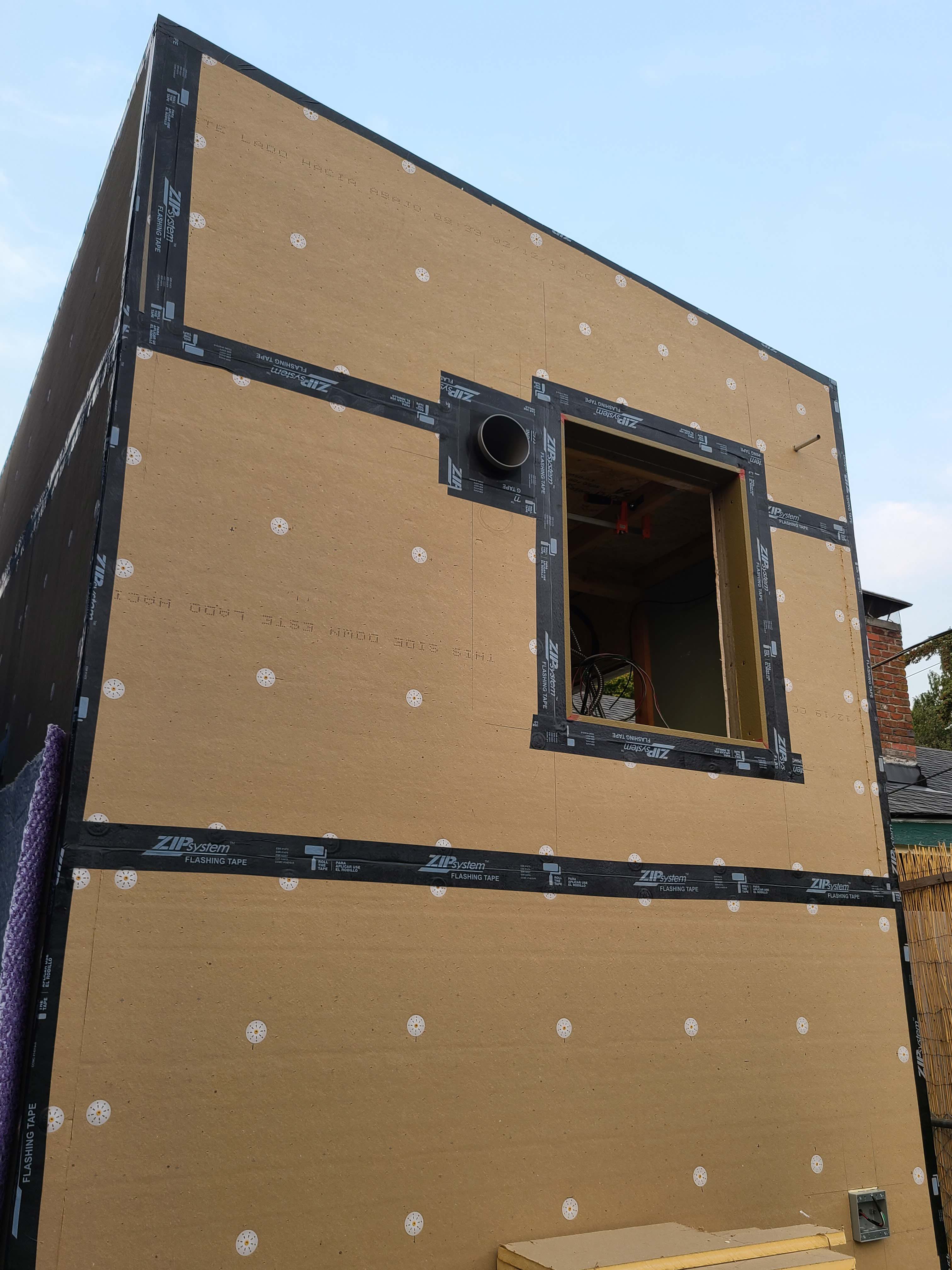 - Air seal any gaps around penetrations and any seams in sheathing.