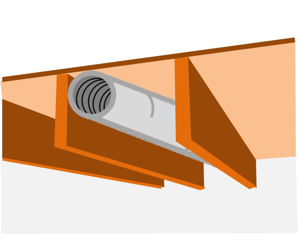 While none of these spaces make acceptable air pathways on their own, some building cavities such as floor joists can make acceptable duct chases to contain an insulated, air-sealed, metal or flex supply or return duct.