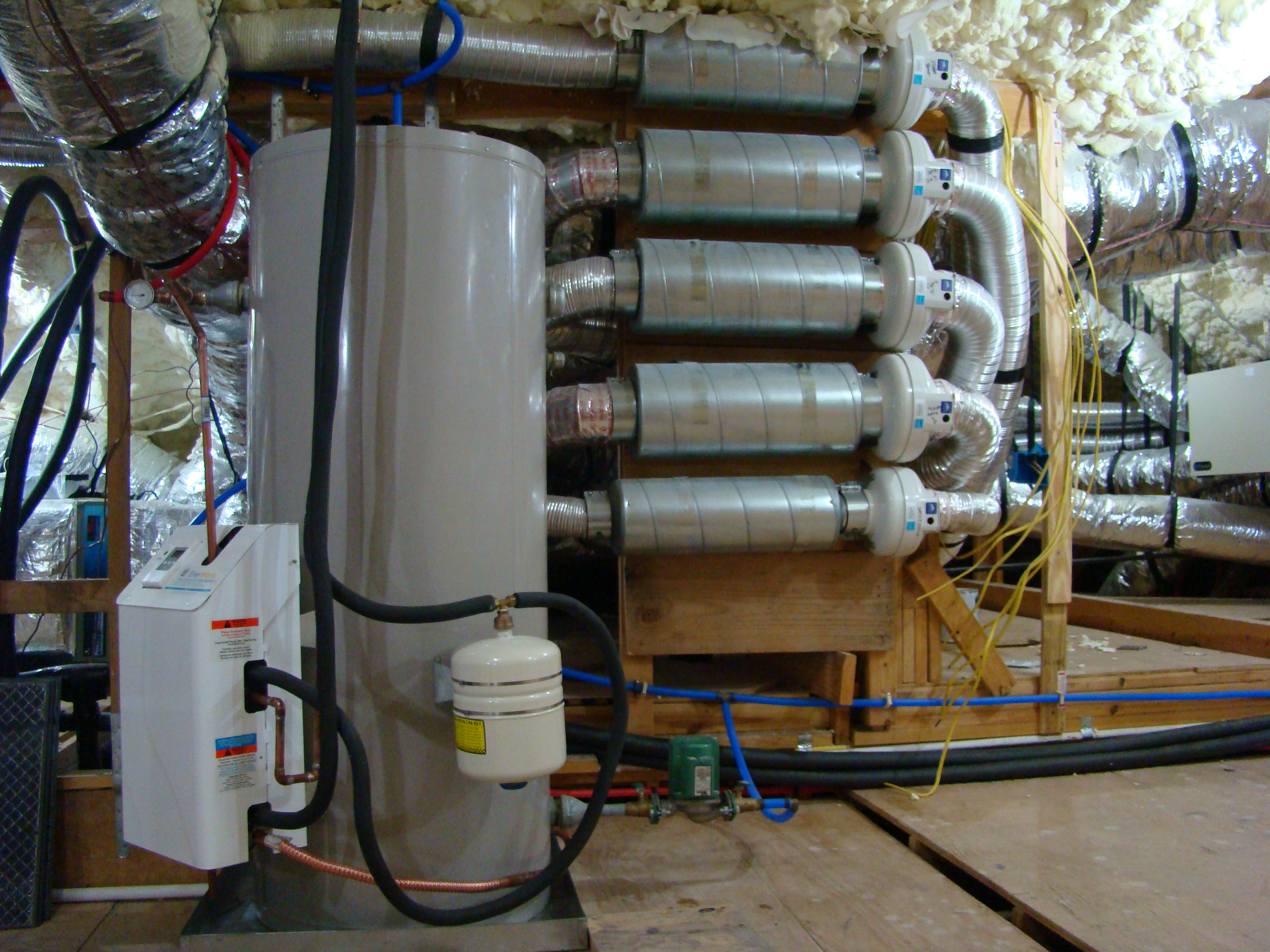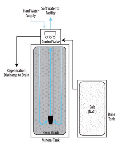 To select an appropriate treatment system, a builder should know which contaminants or water properties the treatment system will address. There is no single device or method that removes all contaminants or solves every water problem, and no single test to determine if water requires treatment. Though most water treatment dealers can provide free in-home or laboratory tests, the tests normally are for nuisance contaminants such as hardness, pH, iron, manganese, sulfur, and total dissolved solids. Occasionally, a dealer may test for nitrate. Seldom does any test include all the contaminants covered by the Safe Drinking Water Act (SDWA). An example of a water softener for treating hardness is shown in Figure 1.