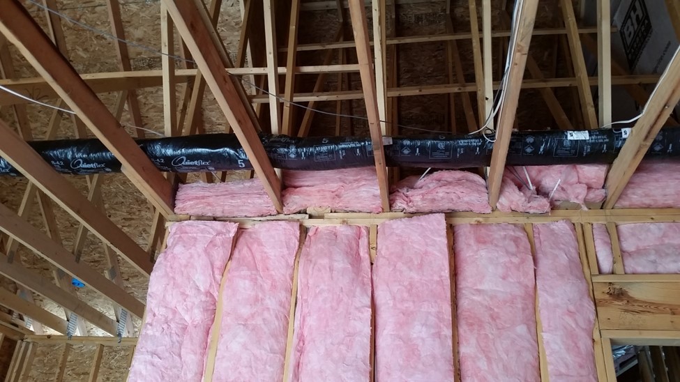 Although duct insulation is not required for exhaust ducts, for ducts passing through unconditioned space in colder climates duct insulation is recommended to prevent condensation. All penetrations created for the duct should take into account the width of any planned insulation to avoid crushing or compressing the insulation.