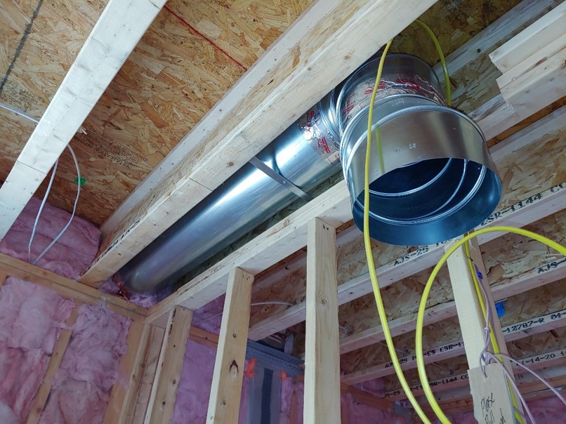 - Air seal all ducts and confirm the exhaust duct is sealed to the fan box with both mechanical fasteners and mastic and/or metal tape. Seal all penetrations to the exterior with caulk or spray foam.