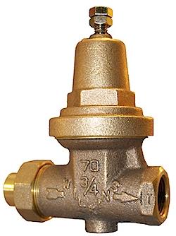 The most common type of water pressure-reducing valve is a direct-acting valve. Direct-acting valves consist of globe-type bodies with a spring-loaded, heat-resistant diaphragm connected to the outlet of the valve. Water entering the valve is constricted within the valve body and directed through the inner chamber, which is controlled by an adjustable spring-loaded diaphragm and disc. Even if the water pressure fluctuates, the PRV ensures a constant flow of water at a functional pressure. In general, the minimum flow through a PRV should be between 10 and 15 percent of the maximum desired flow rate. Select a regulator for which operating pressures fall within the middle of its rated range, not based on the size of the pipe to which it will be attached.