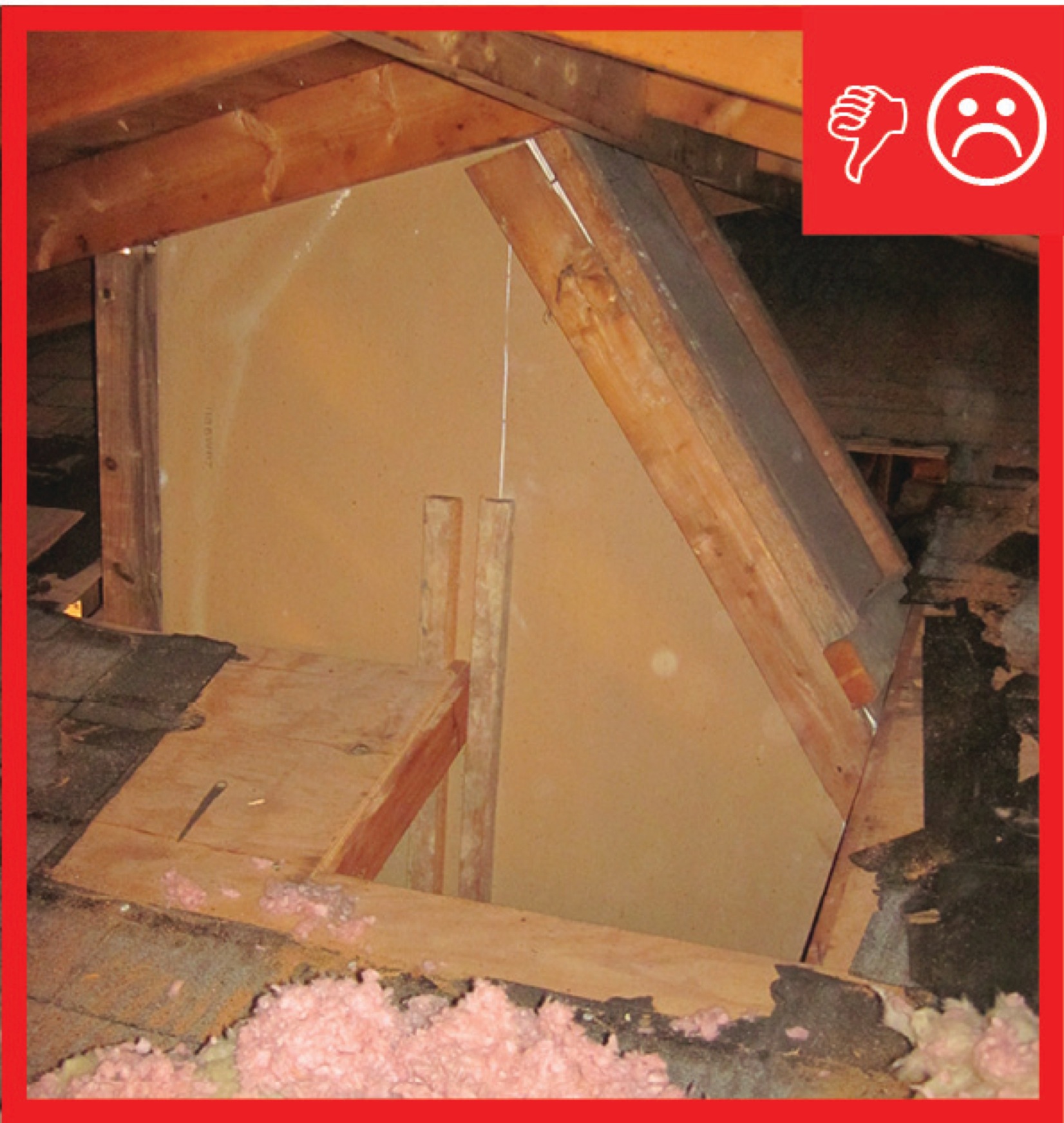 This work will be performed from inside the attic so use safe work practices and be aware of hazardous conditions as described in the attic assessment guide.