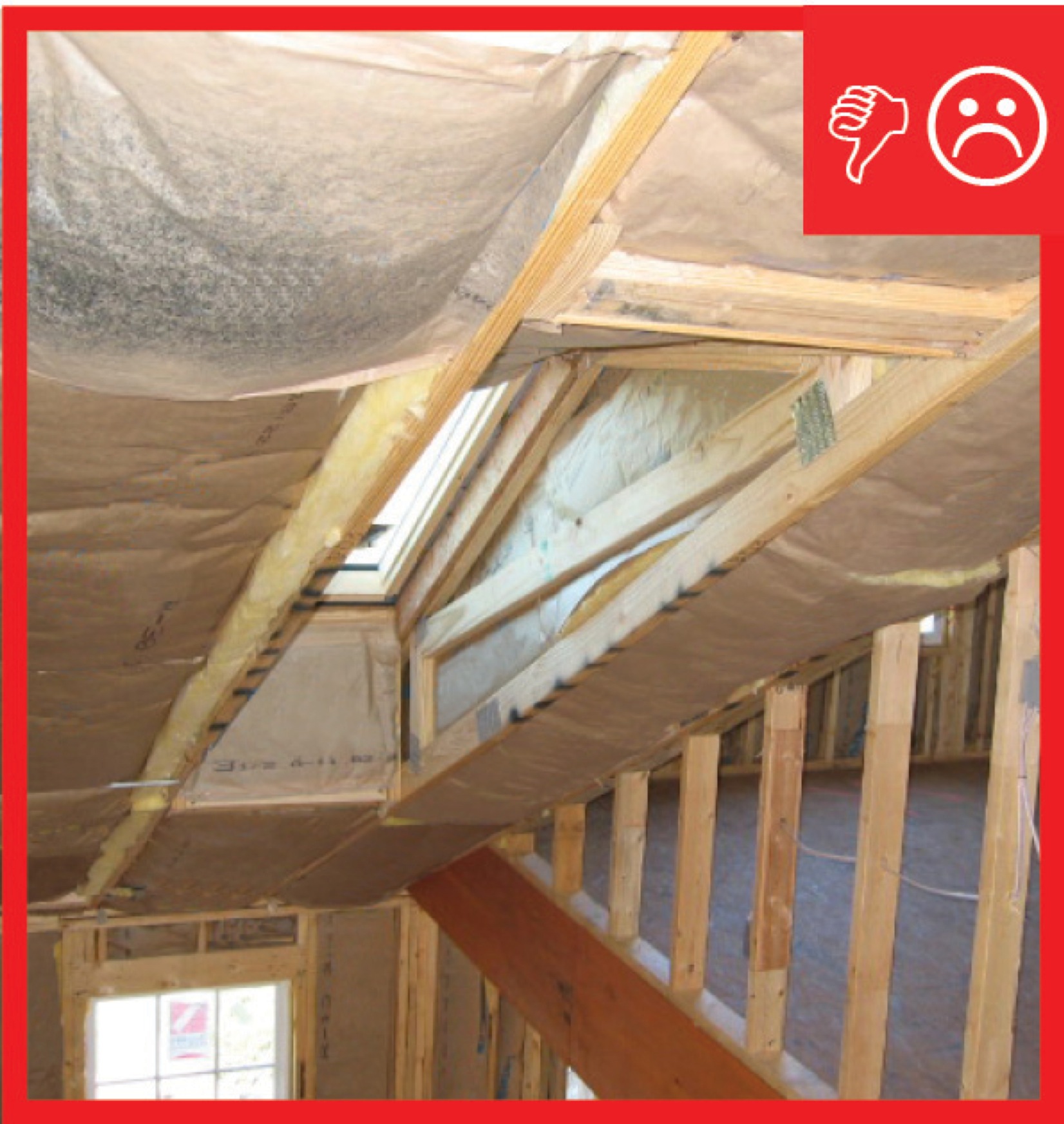- Install new unfaced batt insulation as needed to completely fill the framing cavities of the skylight shaft.