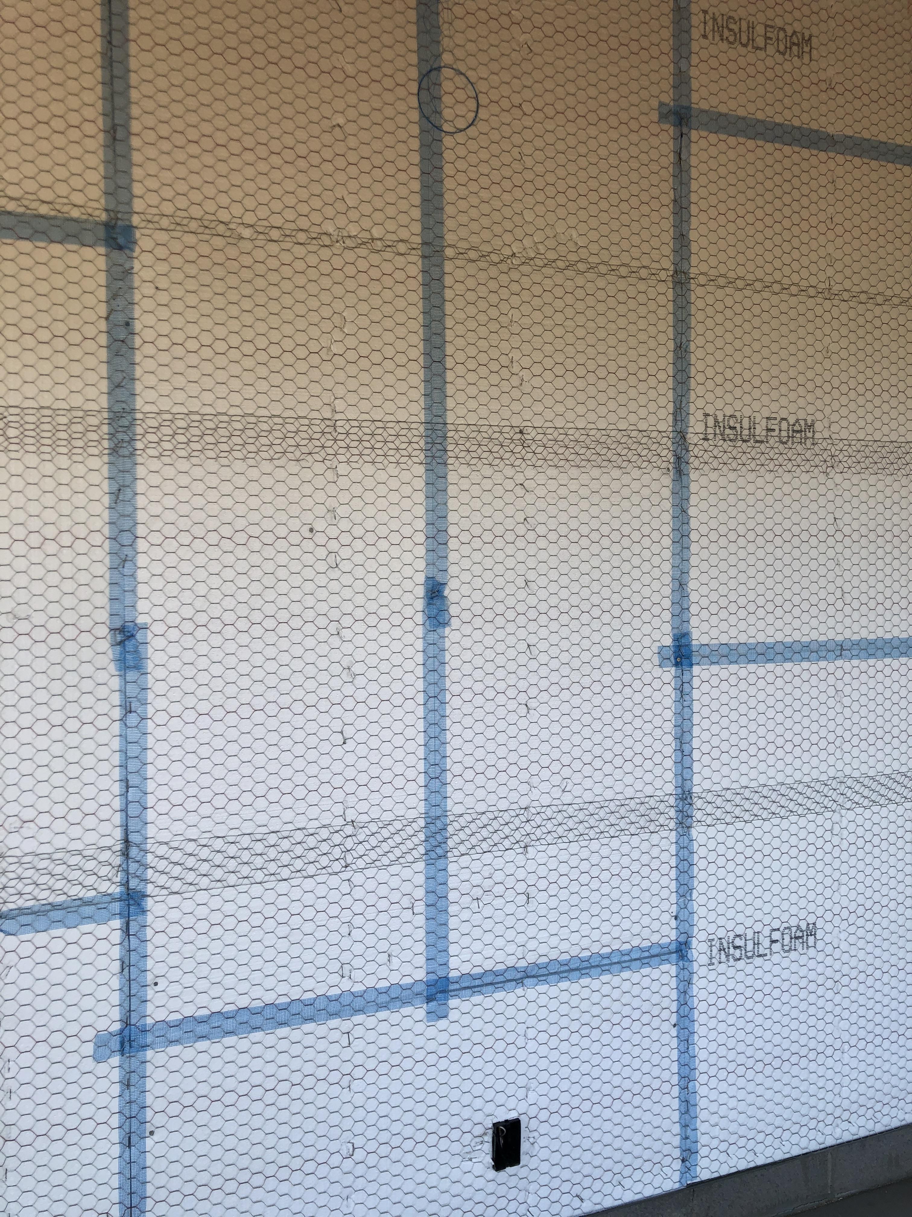 Tape the joints of the insulation, even when the water control layer and drainage plane are located behind the insulation, to keep stucco out of the joints so that a uniform stucco thickness is maintained for even drying.
