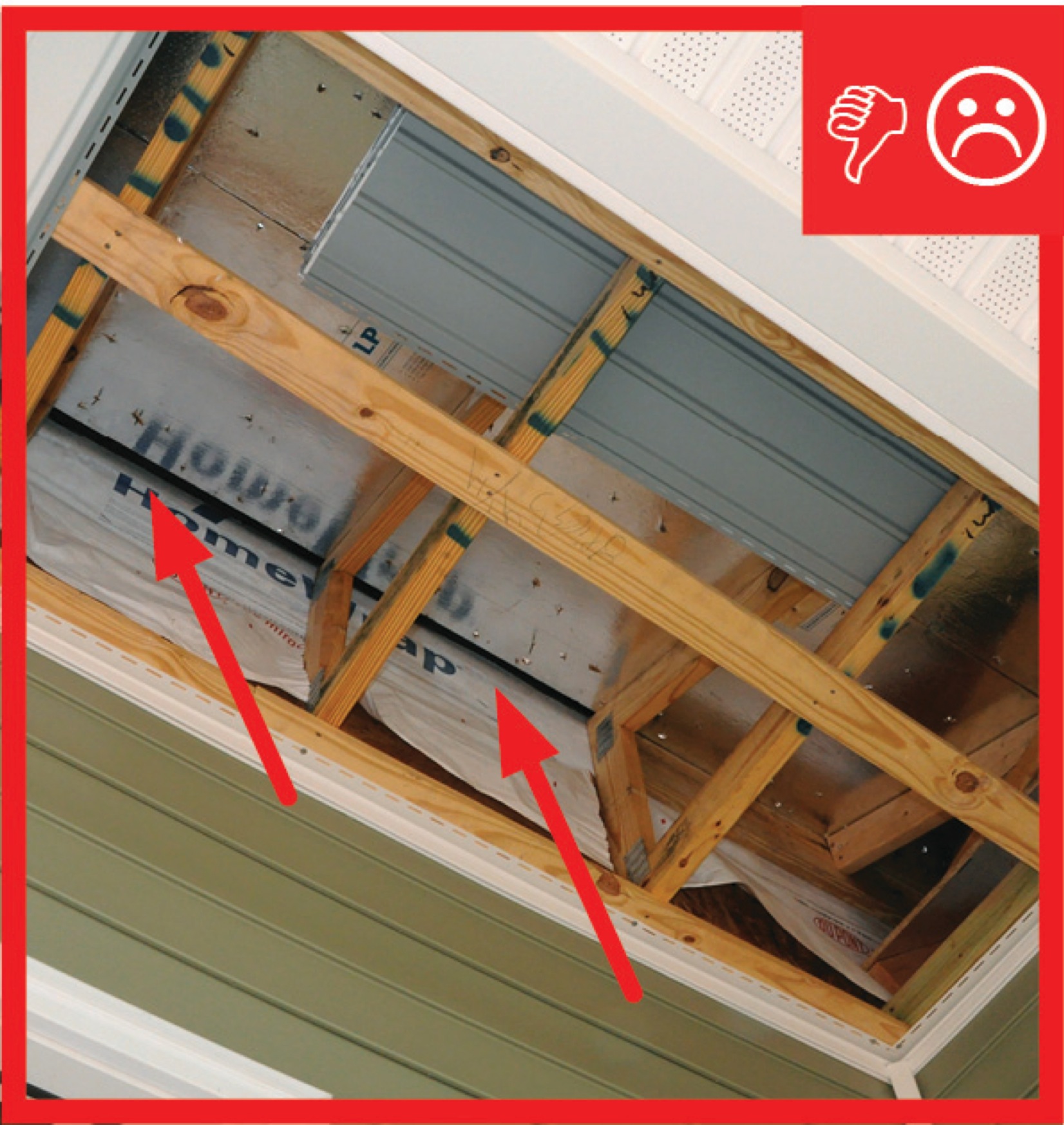 - Install a porch ceiling or cover the wall sheathing with exterior siding.